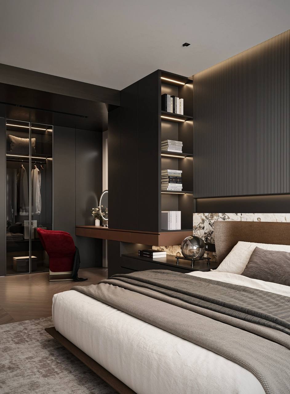 Italian design incorporates clever use of furniture, and light all while retaining the architectural features. Maximum utilization of space is achieved by concealed and smart storage options that create a clean, clutterless look.